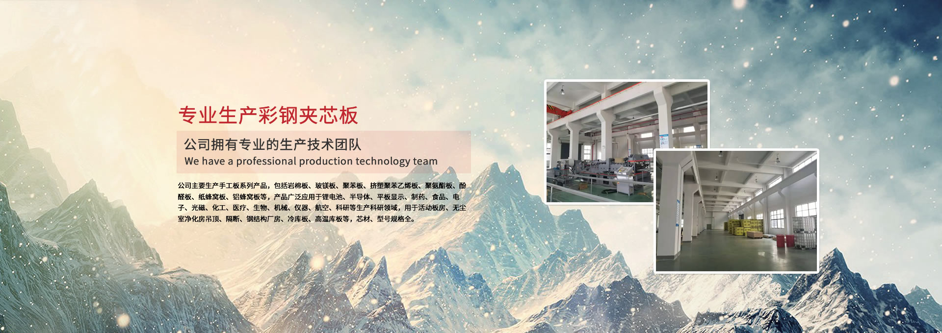 公司主要生產(chǎn)手工板系列產(chǎn)品,包括巖棉板、玻鎂板、聚苯板、擠塑聚苯乙烯板、聚氨酯板、酚醛板、紙蜂窩板、鋁蜂窩板等,產(chǎn)品廣泛應(yīng)用于鋰電池、半導(dǎo)體、平板顯示、制藥、食品、電子、光磁、化工、醫(yī)療、生物、機(jī)械、儀器、航空、科研等生產(chǎn)科研領(lǐng)域,用于活動(dòng)板房、無塵室凈化房吊頂、隔斷、鋼結(jié)構(gòu)廠房、冷庫板、高溫庫板等,芯材、型號(hào)規(guī)格全。 公司擁有專業(yè)的生產(chǎn)技術(shù)團(tuán)隊(duì),周到的服務(wù)保證,以“質(zhì)量至上、信譽(yù)至上、服務(wù)至上”為宗旨,為用戶提供合格的產(chǎn)品和滿意的服務(wù),歡迎各界朋友參觀、指導(dǎo)!公司竭誠希望與各界朋友建立廣泛聯(lián)系,加強(qiáng)相互合作、共同發(fā)展!